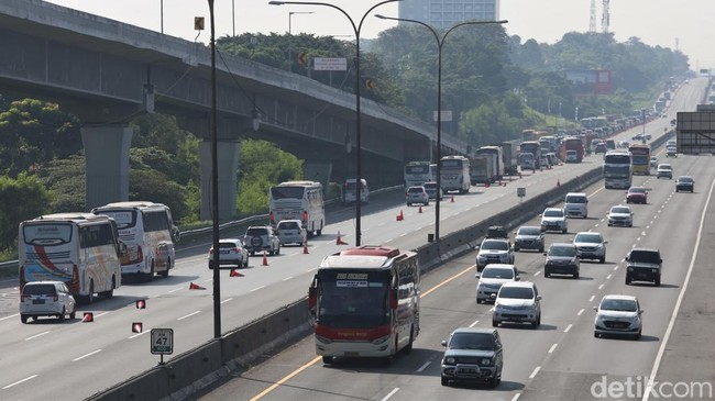 Karawang - Arus lalu lintas di jalur A Tol Jakarta-Cikampek KM 47 ramai lancar pagi ini. Diketahui, hari Minggu (8/5) diprediksi merupakan puncak arus balik lebaran 2022.