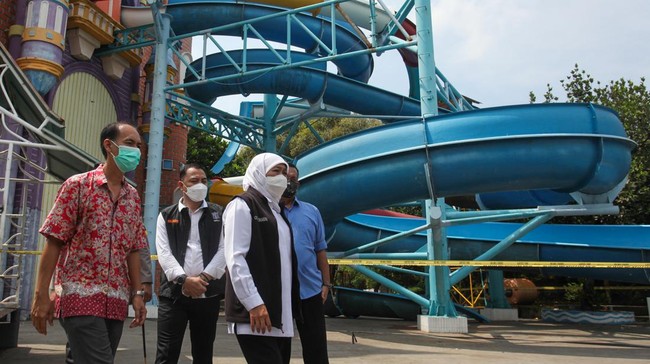 Kondisi Kenpark Surabaya yang Ditutup Sementara Usai Perosotan Ambrol