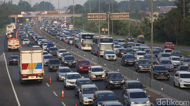 Padat Merayap! Potret Kemacetan Arus Balik di KM 54 Karawang Timur