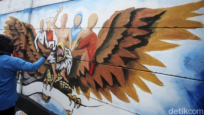 Jakarta - Lomba melukis mural "Keberagaman Indonesia" digelar di Bekasi. Lomba itu merupakan rangkaian kegiatan Tentara Manunggal Masuk Desa ke-113 Kodim 0507/Bekasi.