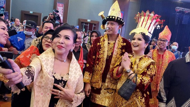 Medan - Usai melantik Pengurus Partai Demokrat Provinsi Sumatera Utara, Ketum AHY langsung bertemu dengan tokoh masyarakat Sumut. Ia bersama istri jadi buruan Selfie.
