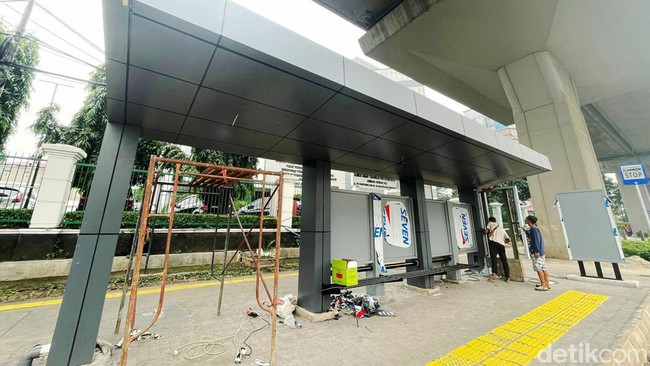 Jakarta - Revitalisasi halte yang sudah menua dilakukan di Jalan MT Haryono, Jakarta. Revitalisasi dilakukan untuk memberikan kenyamanan pengguna transportasi umum.