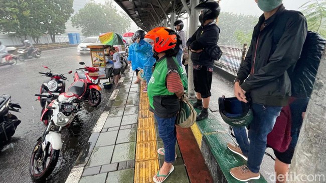 Jakarta - Saat hujan turun secara tiba-tiba, pemotor dan pejalan kaki akan segara mencari tempat berlindung. Salah satunya di halte bus.