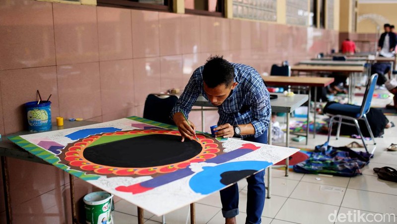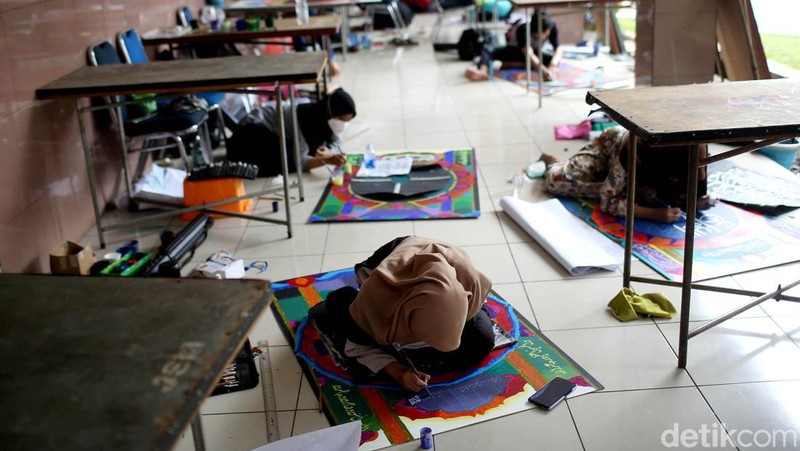 Terlihat para peserta begitu fokus dalam mengerjakan karyanya di Plaza Gedung Puspem Kota Tangerang.