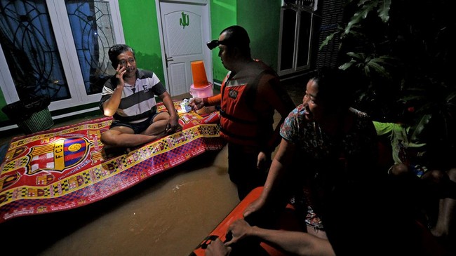 Jambi - Curah hujan yang tinggi menyebabkan kawasan Jambi terendam banjir. Tim SAR Gabungan dikerahkan untuk mengevakuasi warga terdampak banjir.