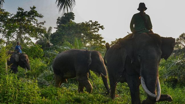 Riau - BBKSDA Riau menangkap dua ekor gajah Sumatra liar yang terjebak di kebun warga. Dua gajah itu dipindahkan ke lokasi kantong di luar Provinsi Riau.
