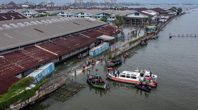 Ribuan Karung Pasir Tambal Tanggul Jebol di Tanjung Emas, Ini Fotonya