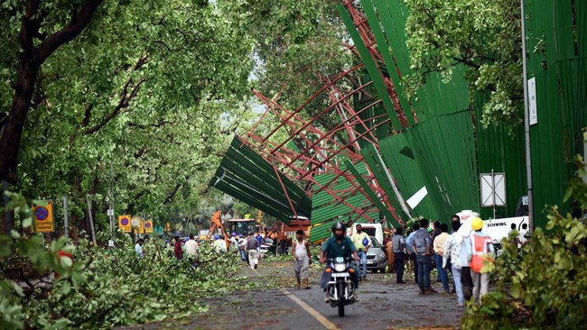 New Delhi - Hujan deras dan badai petir di New Delhi, India, membuat puluhan pohon tumbang di sejumlah lokasi. Ini foto-foto terkininya.