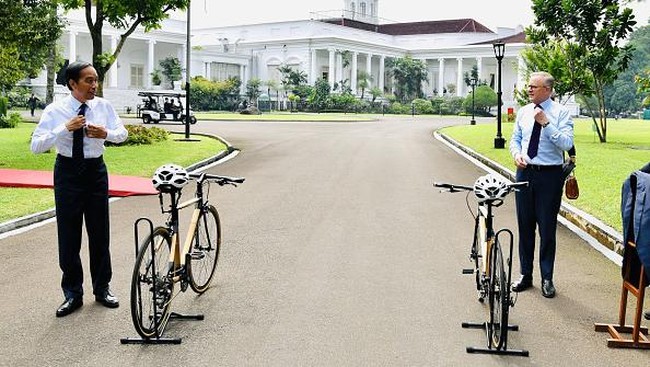 Bogor - Presiden Jokowi menerima kunjungan PM Australia Anthony Albanese di Istana Kepresidenan Bogor. Jokowi sempat mengajak Anthony gowes bareng dengan sepeda bambu.