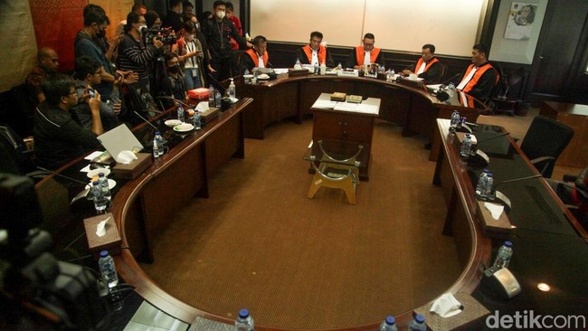 Wihadi Wiyanto memimpin sidang Majelis Kehormatan Partai soal pemecatan M Taufik di kantor DPP Partai Gerindra, Jl RM Harsono, Jakarta Selatan, Selasa (7/6/2022).