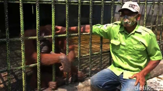 Kampar - Video orang utan menarik pengunjung yang sedang membuat konten viral di medsos. Ini dia orang utan Kebun Binatang Kasang Kulim, Kampar, yang viral tersebut.