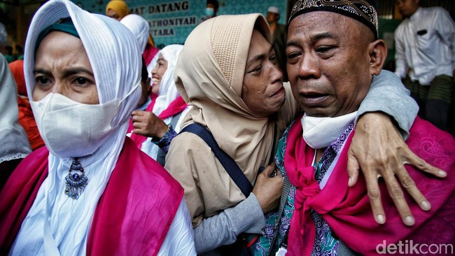 Jakarta - Puluhan calhaj asal Jakarta Utara berangkat menuju Asrama Haji Pondok Gede. Kerabat dan keluarga melepas dengan emosional, penuh doa dan haru. Lihat fotonya.