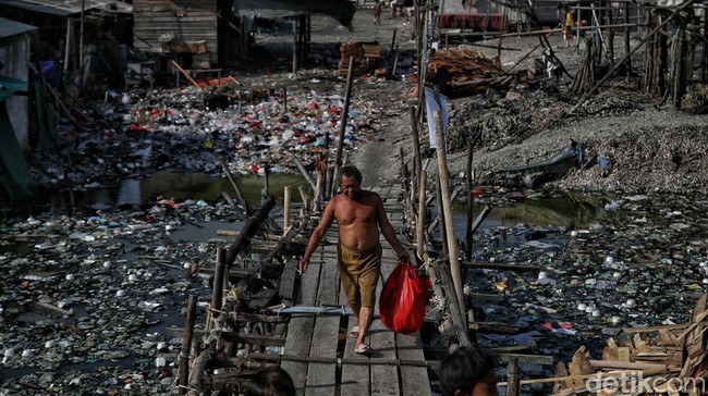 Jakarta - Hamparan sampah terlihat di kampung nelayan yang berdekatan dengan tanggul laut di Cilincing, Jakut. Seperti apa penampakannya? Ini fotonya.
