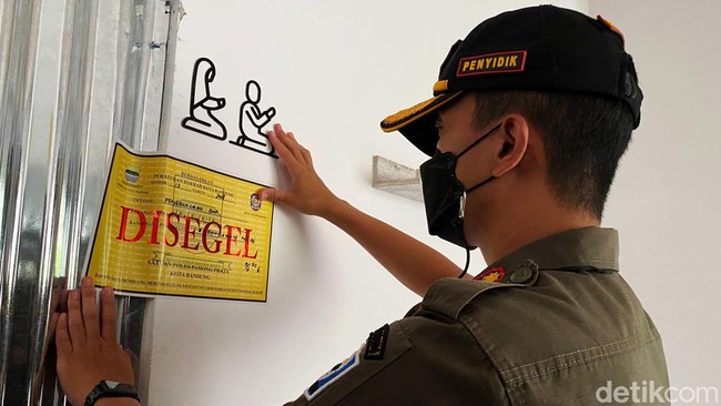 Penyegelan dilakukan oleh petugas Satpol PP Kota Bandung dan Badan Keuangan Aset Daerah (BKAD) Kota Bandung, Kamis (9/6/2022).