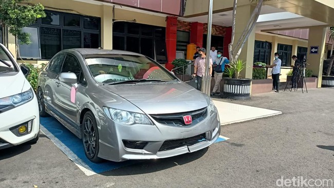 Jakarta - Seorang anggota polisi ditabrak mobil yang ditumpangi sekelompok pemuda di Jaksel. Polisi menunjukkan mobil yang dipakai untuk menabrak polisi tersebut.