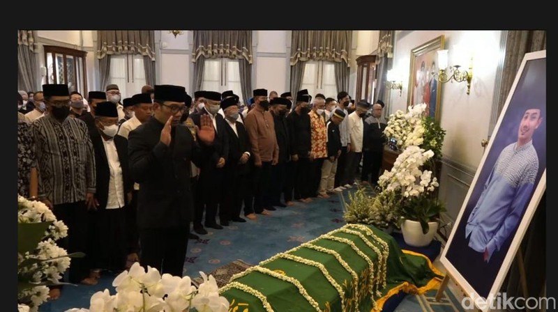 Pantauan detikJabar Minggu, (12/6/2022), Wakil Gubernur Jawa Barat, Uu Ruzhanul Ulum, dan Kapolda Jawa Barat Irjen Pol Drs Suntana ikut menjadi makmum salat jenazah. Sejumlah warga ikut dalam salat jenazah Eril. (Tangkapan Layar YouTube/Humas Jabar)