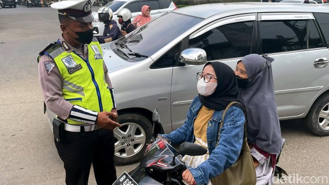 Priiit... Pemotor di Bekasi Kena Tilang Gegara Tak Pakai Helm