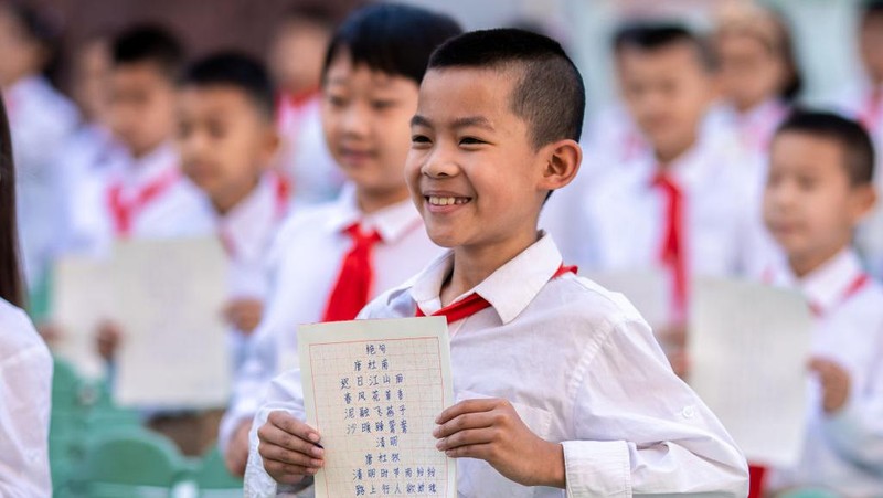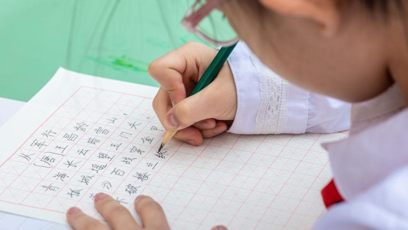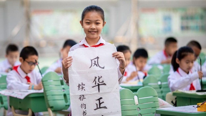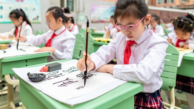 Begini suasana saat puluhan siswa sekolah dasar di China sibuk dalam kompetisi kaligrafi, di Hohhot, Mongolia Dalam, China, Senin (13/6/2022). Kota ini sekitar 500 km sebelah barat Ibu Kota Beijing.