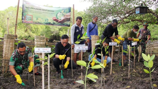 Bali - Beragam cara bisa dilakukan untuk memperingati Hari Lingkungan Hidup se-Dunia. Salah satunya dengan menanam bakau di Taman Hutan Raya Ngurah Rai Bali.
