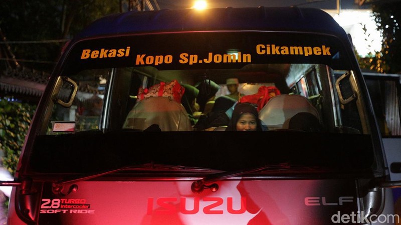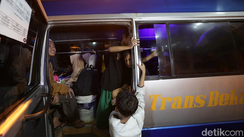 Sejumlah santri pesantren Khilafatul Muslimin menaiki kendaraan untuk pulang kedaerah asal di Pekayon, Bekasi, Jawa Barat, Kamis (16/6/2022)