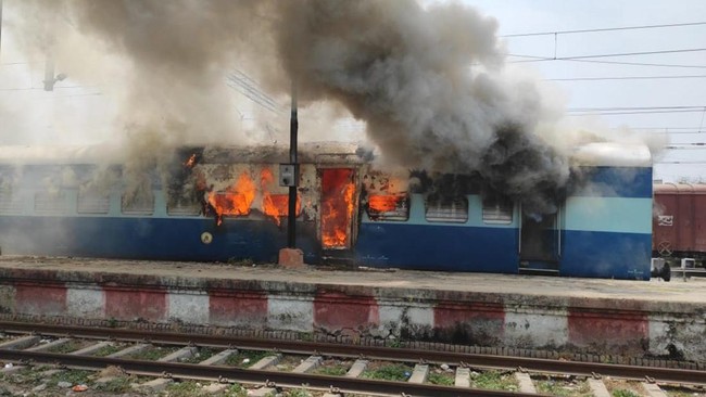 Ricuh, Gerbong Kereta di India Dibakar Massa, Ini Penampakannya