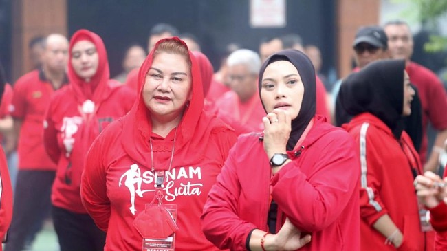 Jakarta - Wali Kota Solo Gibran Rakabuming Raka ikut hadir dalam rapat koordinasi nasional (rakornas) di Sekolah PDIP. Baju Gibran beda sendiri saat melakukan senam pagi.