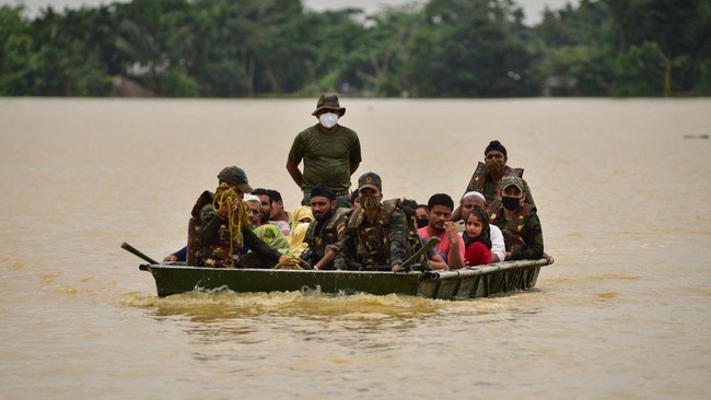 Potret Evakuasi Korban Banjir Dahsyat di Bangladesh-India