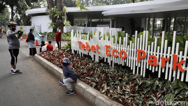 Jakarta - Sejumlah warga terlihat masih mendatangi Taman Tebet Eco Park, Minggu (26/6) meski hanya di bagian pintu depan saja.
