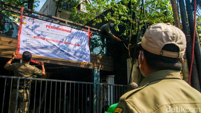 Jakarta - Satpol PP DKI Jakarta menyegel outlet Holywings hari ini. Penyegelan dilakukan menyusul dicabutnya izin usaha di 12 outlet Holywings Jakarta.