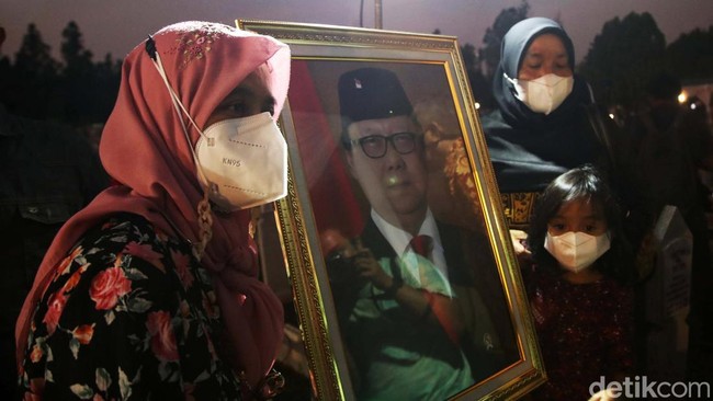 Jakarta - Pemakaman MenPAN-RB Tjahjo Kumolo di TMP Kalibata, Jakarta, turut dihadiri warga. Mereka melepas MenPAN-RB itu ke tempat terakhir.