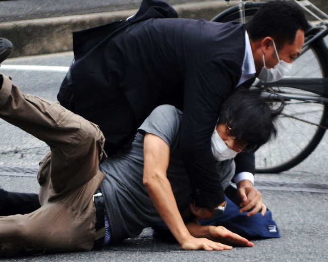 Pihak kepolisian Jepang langsung menangkap Yamagami Tetsuya usai insiden penembakan itu terjadi. (The Yomiuri Shimbun/Reuters).