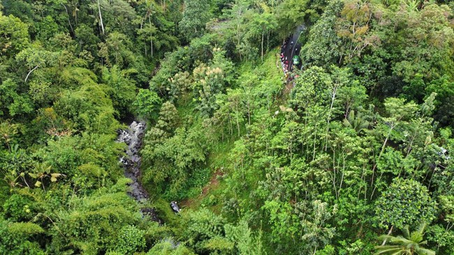 Banyuwangi - Mobil wisatawan terperosok ke dalam jurang di Banyuwangi, Jawa Timur. Mobil yang membawa 9 orang wisatawan itu masuk ke jurang sedalam kurang lebih 40 meter.
