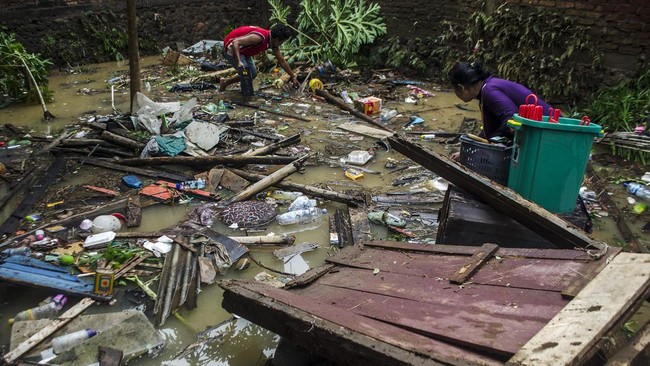 Garut - Banjir bandang menerjang sejumlah kecamatan di Kabupaten Garut, Sabtu (16/7/2022). Banjir bandang itu mengakibatkan kerusakan di sejumlah wilayah.