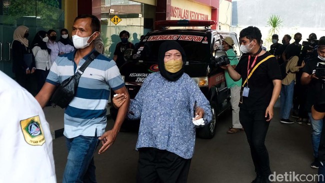 Jakarta - Keluarga korban kecelakaan maut di Cibubur, Bekasi, mendatangi RS Polri Kramat Jati, Selasa (19/7/2022). Mereka datang sambil menahan kesedihan.