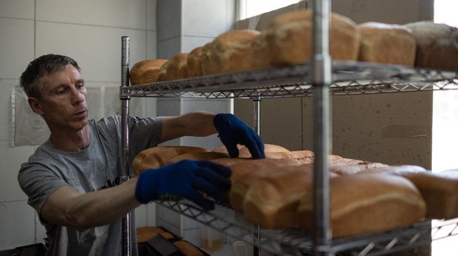 Ukraina - Sebuah toko roti di Kyiv, Ukraina, tetap menyalurkan ribuan potong roti untuk desa-desa dan kota yang hancur selama invasi Rusia.