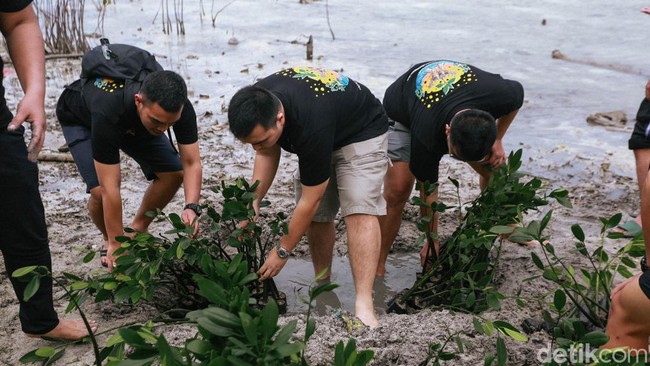 Jakarta - Alumni Akademi Kepolisian (Akpol) Angkatan 2017 Detasemen Hastadharana melakukan penanaman 5 ribu bibit pohon mangrove di Pulau Tidung Besar, Kepulauan Seribu.
