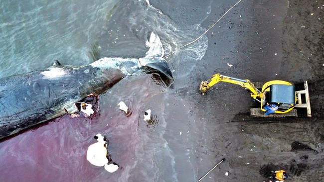 Langkah Terakhir Evakuasi Paus Terdampar di Banyuwangi
