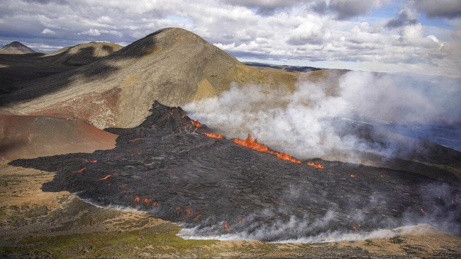 Islandia - Kantor Meteorologi Islandia (IMO) mengumumkan erupsi gunung berapi di Reykjavik, Islandia, pada Rabu (3/8/2022). Gunung ini sempat meletus juga tahun lalu.