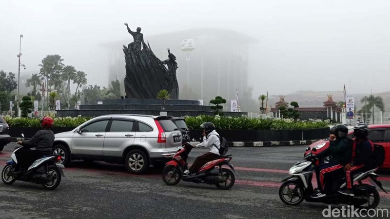 Penampakan Kabut yang Bikin Pesawat Putar-putar di Langit Pekanbaru