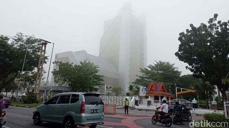 Kabut tebal juga menutupi gedung-gedung tinggi yang ada di Pekanbaru.