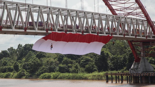 Bendera Merah Putih Raksasa Mejeng di Jembatan Kahayan