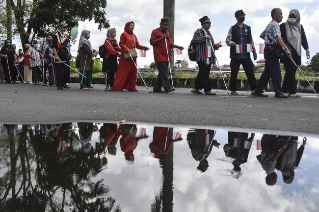Ratusan Tunanetra Rally Tongkat Sambut Kemerdekaan