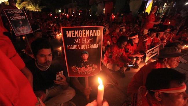 Jakarta - Sejumlah orang dari berbagai elemen masyarakat gelar aksi solidaritas untuk mengenang Brigadir Joshua. Mereka menyalakan 3000 lilin dan doa bersama.