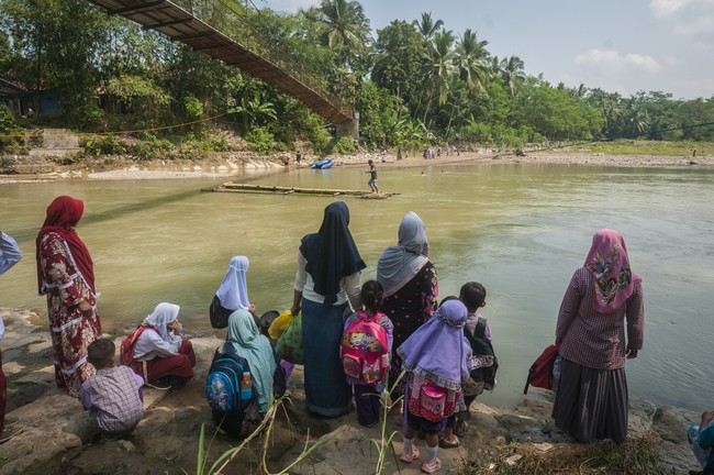 Duh, Masih Ada Anak SD di Banten Naik Getek ke Sekolah