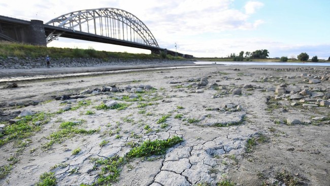 Belanda - Bencana kekeringan yang tengah melanda Eropa semakin meluas. Kini giliran Belanda yang mengalami dampak kekeringan cukup parah. Begini penampakannya.