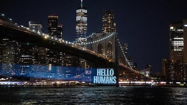 Amerika Serikat - Greenpeace menerangi bawah Jembatan Brooklyn dengan dengan proyektor. Dalam pesannya, Greenpeace mendorong PBB untuk menyelesaikan Perjanjian Laut Global.