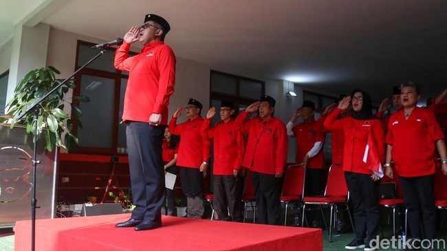 Jakarta - Partai PDIP menggelar upacara bendera untuk memperingati HUT ke-77 RI di Sekolah Partai, Lenteng Agung. Selain upacara, PDIP juga menggelar lomba 17 Agustus.