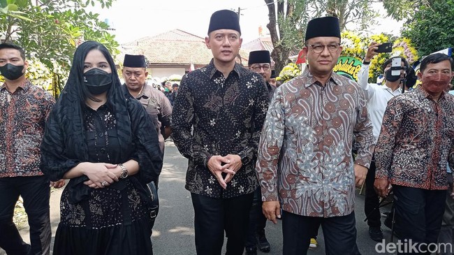 Jakarta - Ketum Partai Demokrat Agus Harimurti Yudhoyono (AHY) dan Gubernur DKI Jakarta Anies Baswedan melayat ke rumah duka ayahanda Emil Dardak, Achmad Hermanto Dardak.