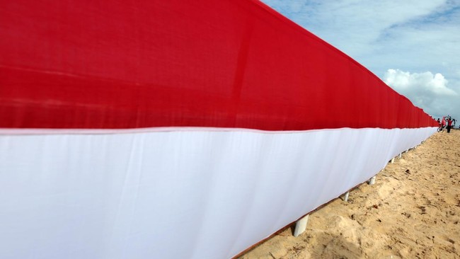 HUT RI, Bendera 100 Meter Dibentangkan di Pulau Kapuk