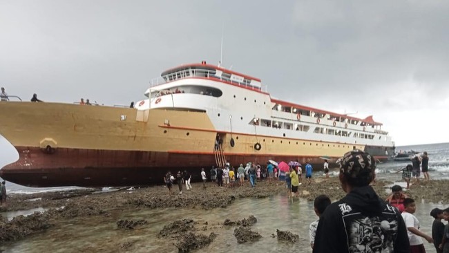 Jakarta - Kapal Motor (KM) Glory Mary kandas di perairan Moronge Pulau Salibabu, Kepulauan Talaud, Sulawesi Utara (Sulut) gegara cuaca buruk.